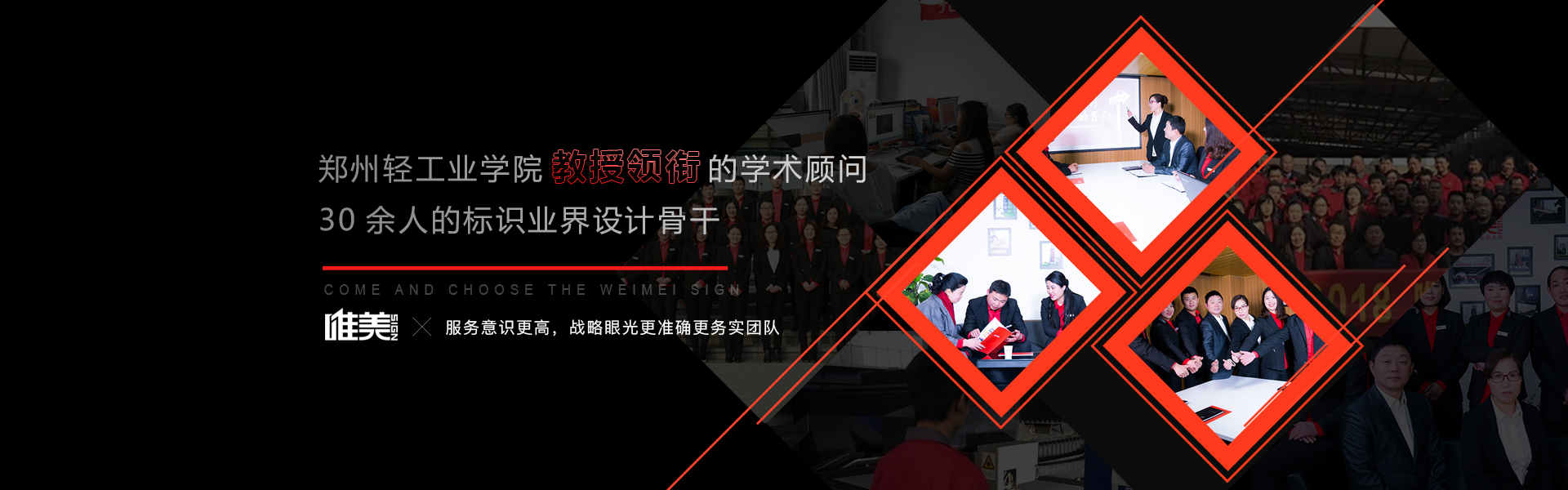 2024-3-21郑州唯美标识设计制作公司拥有21000平方现代化生产车间、多台先进设备、100多名技工团队、12位资深设计师团队,严遵19道制作工序和6S管理体系,成功服务2800多个标识项目,3...